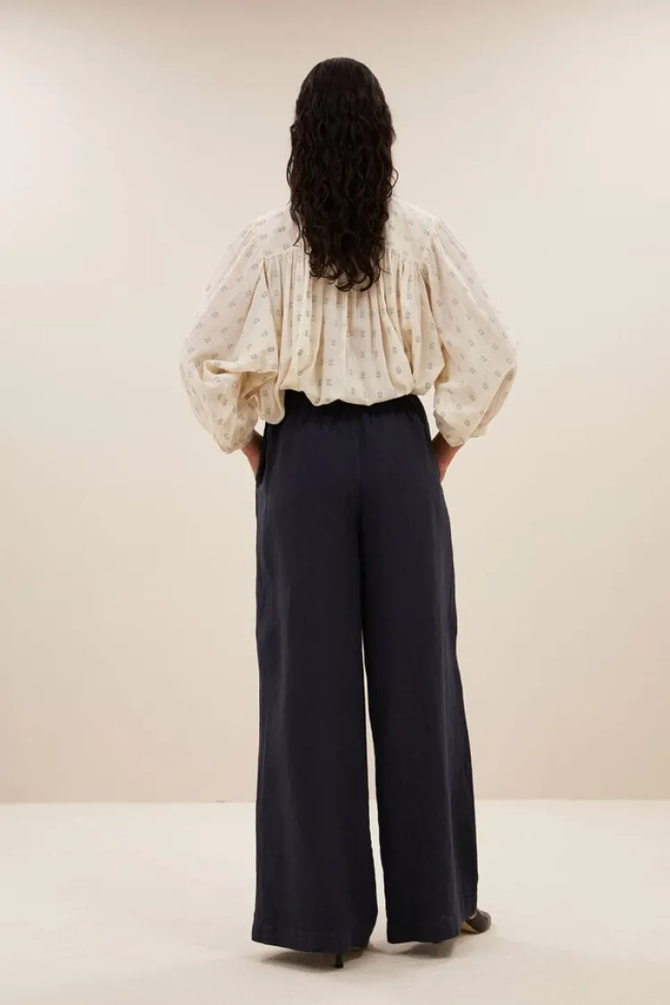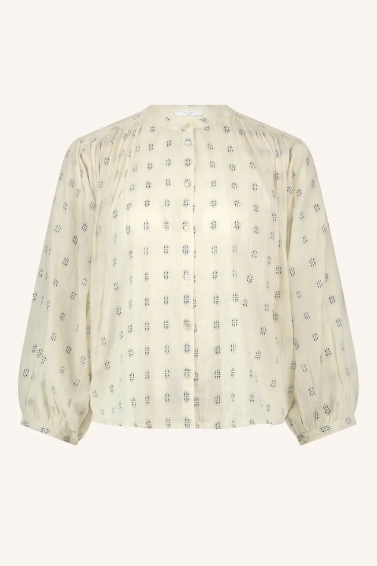 De Becky Dali blouse heeft een ronde hals, knoopsluiting en losse pasvorm. Met volumineuze mouwen, een sierlijk patroon…
