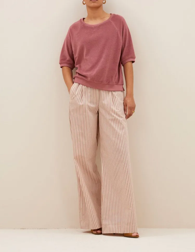 De Neva Slub Top is een comfortabele, korte mouw top met ronde hals, gemaakt van teddy sweatstof. De top is afgewerkt met ribboorden en heeft kleine splitjes aan de zijkanten.