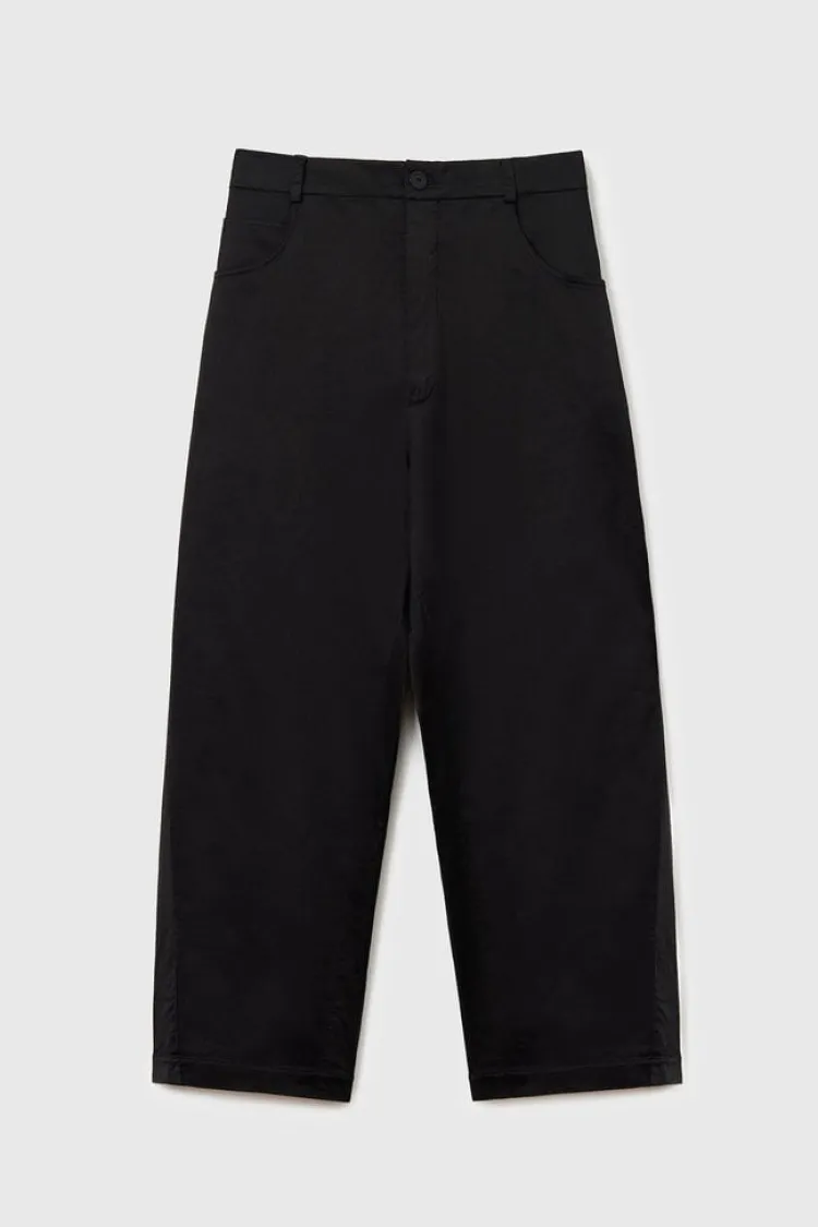 De Satin Straight Pants in een iconische rechte pasvorm in een nieuwe stof. Met elastische taille, hoge taille, gebogen…