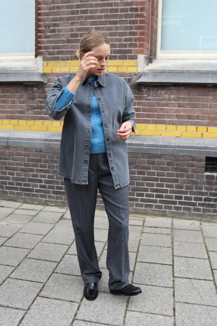 De Blue Pants heeft een mooie krijtstreep. De broek heeft aan de achterkant een elastiche band waardoor de broek erg co…
