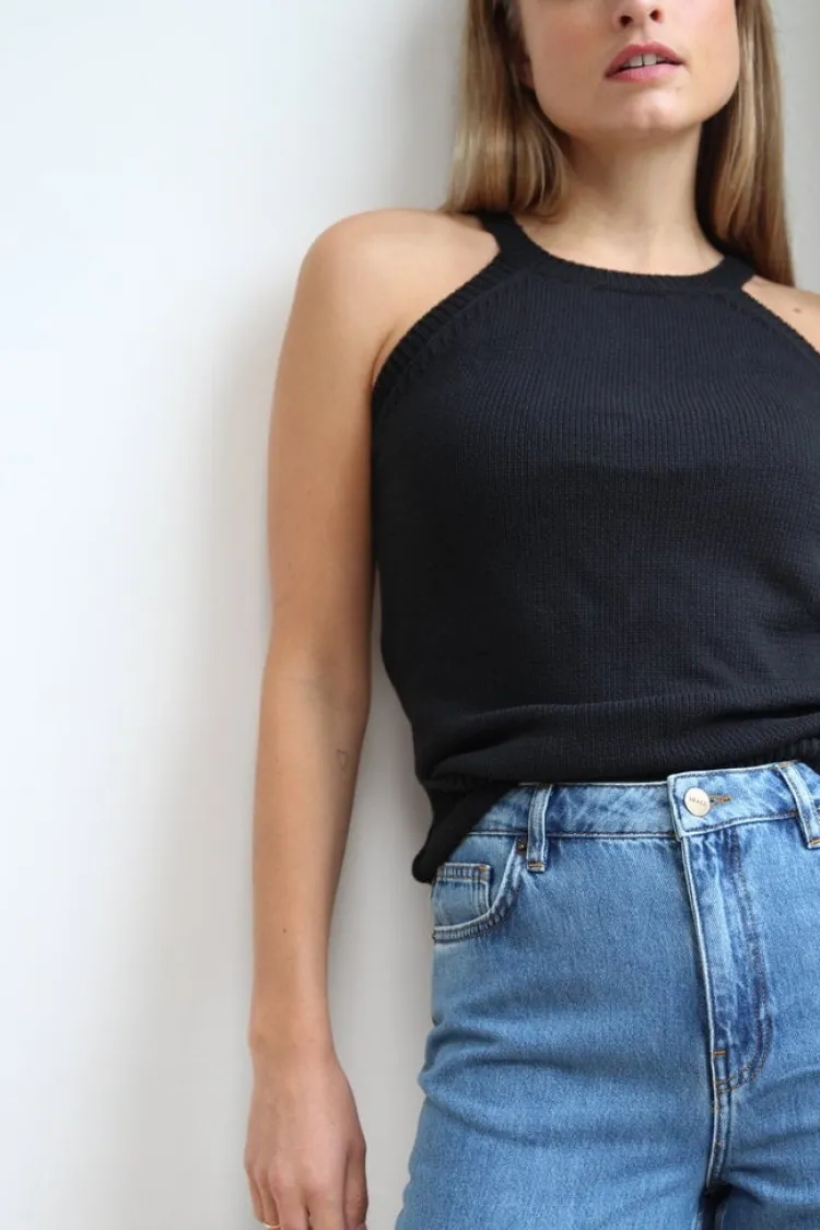 De Badiou Top is gemaakt van 100% Katoen. De haltertop heeft een ronde hals, afgewerkt met een rib boord aan de onderkant en hals en is gebreid. Geproduceerd door een klein familie bedrijf in Italië.