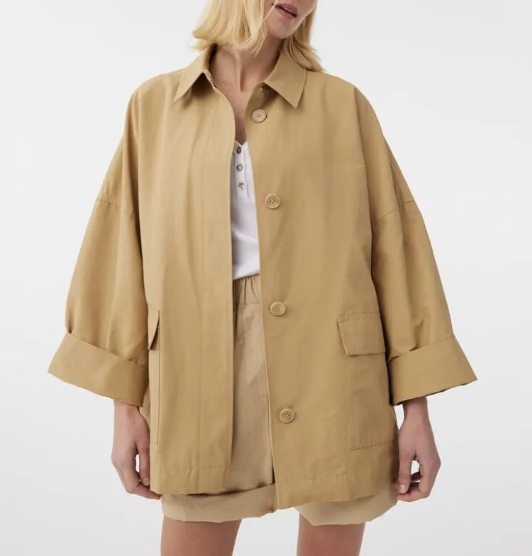 De Carry coat is een elegante, oversized jas met een klassieke kraag en knoopsluiting. De wijde mouwen en praktische zakken maken het een stijlvol en comfortabel item.